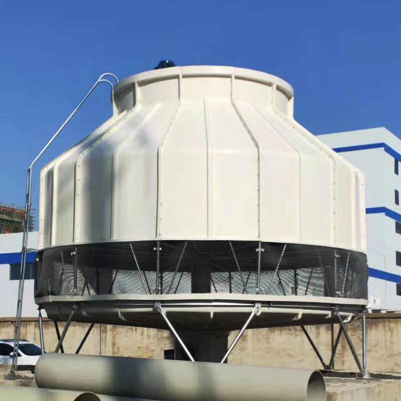 圓形逆流式冷卻塔采用逆流式氣熱交換技術實現降溫效果。冷卻塔采用防腐設計,無易損件,返修率極低,設計使用年限30年。主體采用玻璃鋼結構,塔體無易腐蝕件,鋼結構件采用國標材質,并熱鍍鋅防腐。填料采用全新的改性PVC材質制成,結構為斜折紋填料,以擴散淋水面積,通過旋轉式霧化布水方式,實現均勻布水,增強冷卻效果。